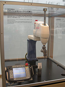 産業用ロボットの今日の普及は日本の自動車メーカー(トヨタ、日産)の生産技術者の多大な努力がなければなしえなかったのではないか、ともいわれます。最新のパートナーロボットも展示されていますが、日本の産業用ロボットの歴史を刻むUNIMATEをはじめ、それらのロボットが動く姿を是非、見てください。なお、ロボットの精度の高さをデモする水平多関節ロボットによるシャープペンシルへの芯の挿入は、名古屋市科学館の垂直多関節ロボットでも実演されています。動きを比較してみるのも興味深いです。